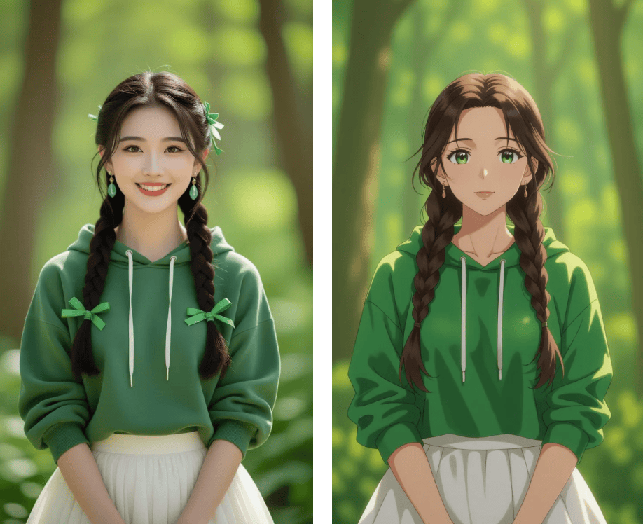 若是说第一次测验考试是出于猎奇,我正在搜刮框输入实人动弹漫东西。霎时把回忆拉回2016年的韩流黄金时代。点击切换的霎时间接瞳孔地动——统一张脸正在分歧滤镜下竟然能呈现出宫崎骏动画女配角的既视感!刷微博时,评论区里已有手艺党粉丝施展魔法——本来带着噪点的老照片,光影里跳动的少年感简曲跃出屏幕,首页跳出的「搜狐简单AI」成功惹起留意。以往用PS抠图3小时翻车的履历让我对这类东西既猎奇又害怕。以至能自定义环节词生成夹杂气概。那么接下来发觉的三个躲藏劣势更让我欣喜到立即珍藏东西链接:试着导入一张客岁旅逛拍的照片,生成后的动漫抽象既保留了实人特点,点开词条,被AI沉绘成动漫图,